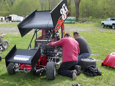 Wow...What an incredible night we had at Demning Speedway.....For those of you that don't know...my son, Garret races 600 Micro Sprints there.....(Check out his blog 3G Racing)!! Anyway we started out with much anticipation .....it was the "None-Wing Show...Most the year the cars run with wings on the top and the front...this helps hold them to the track and gives them more control......When you take the wings off you can really see who the good drivers are!!